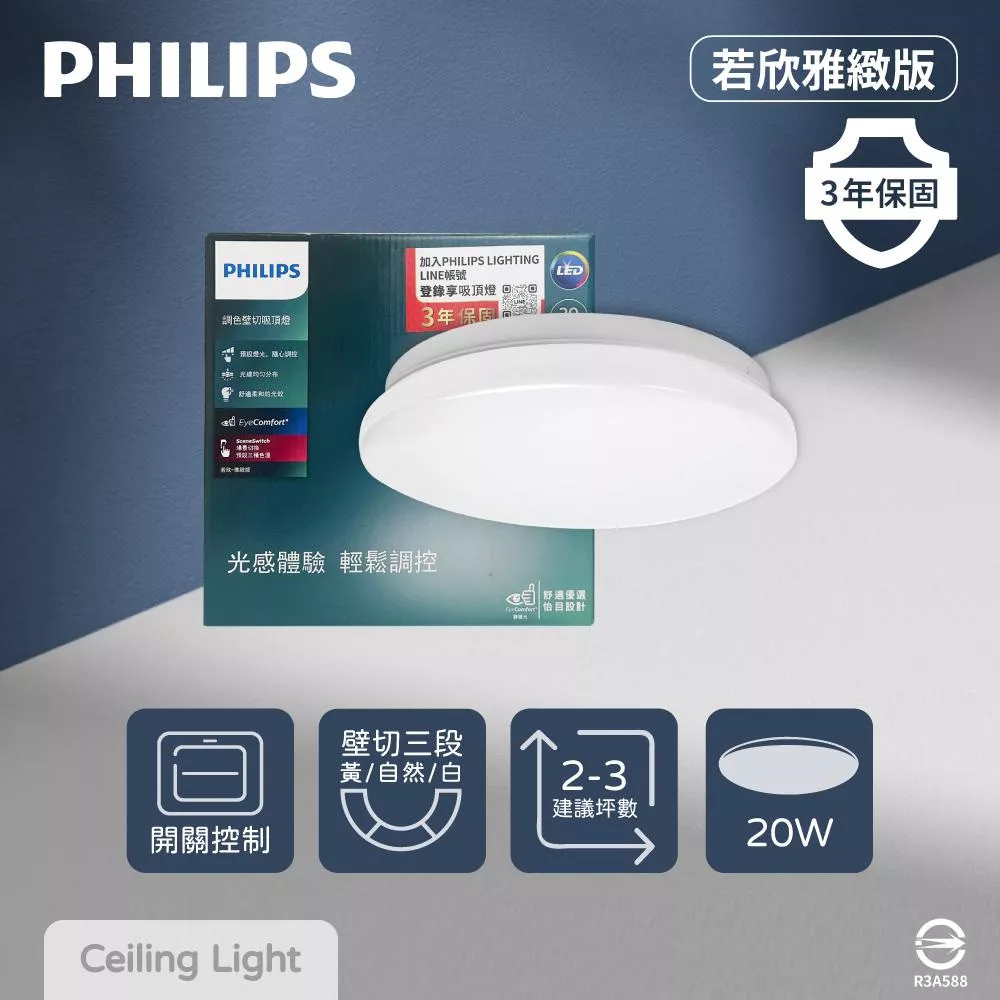 PHILIPS飛利浦 LED 若欣雅緻 20W 壁切三段調色 全電壓 LED吸頂燈