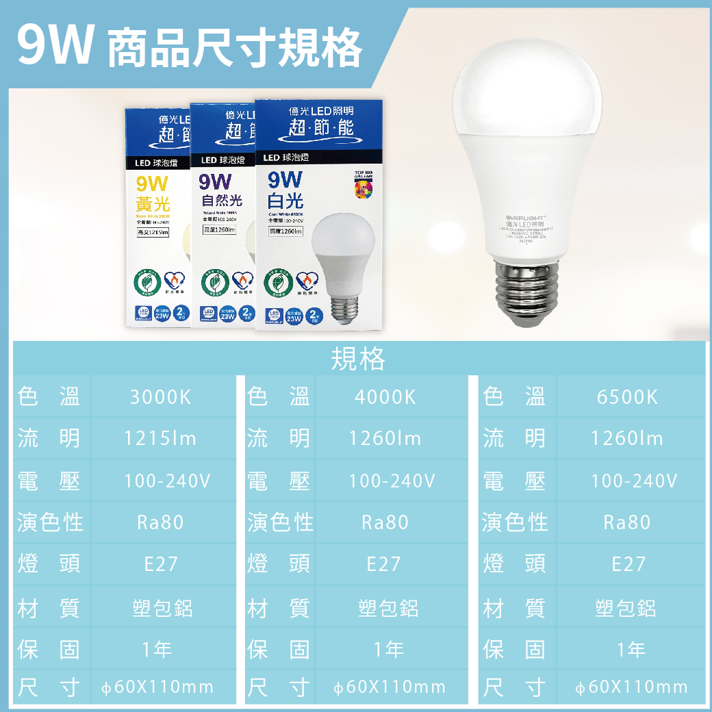 億光 LED 9W 全電壓 E27 節能標章 環保標章 球泡燈