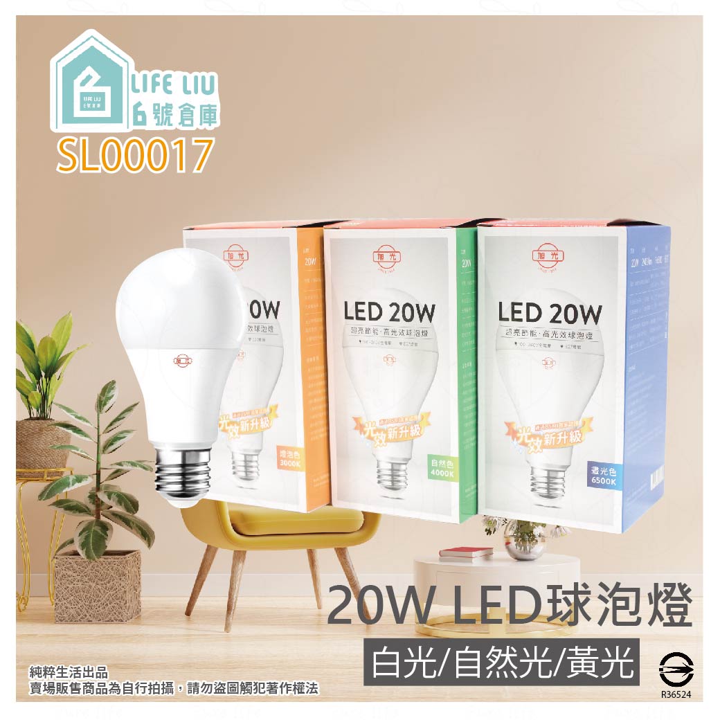 旭光 LED燈泡 20W 白光 黃光 自然光 E27 全電壓 球泡燈