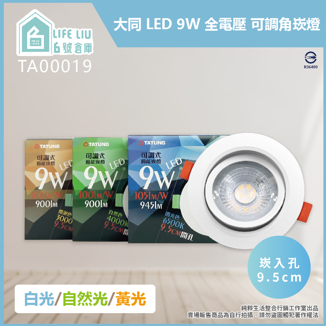 大同 TATUNG LED 9W 全電壓 9.5cm崁燈