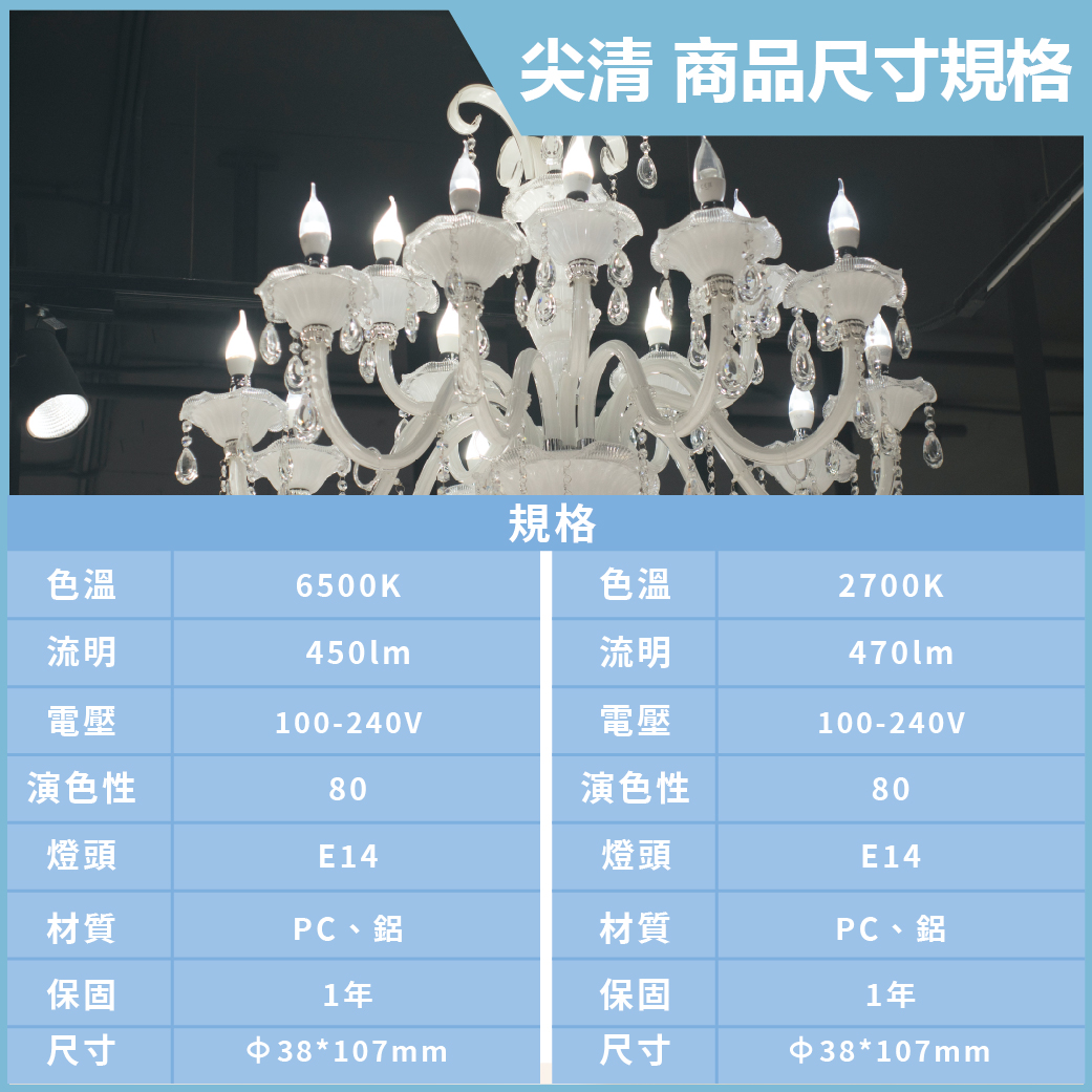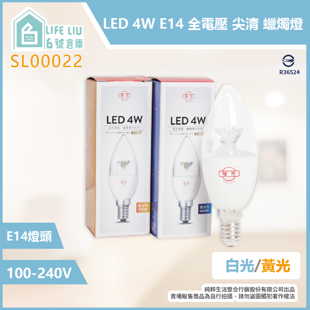 旭光 LED 4W E14 全電壓 亮彩節能 尖清 蠟燭燈 (白光/黃光)