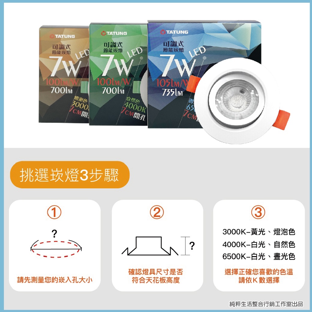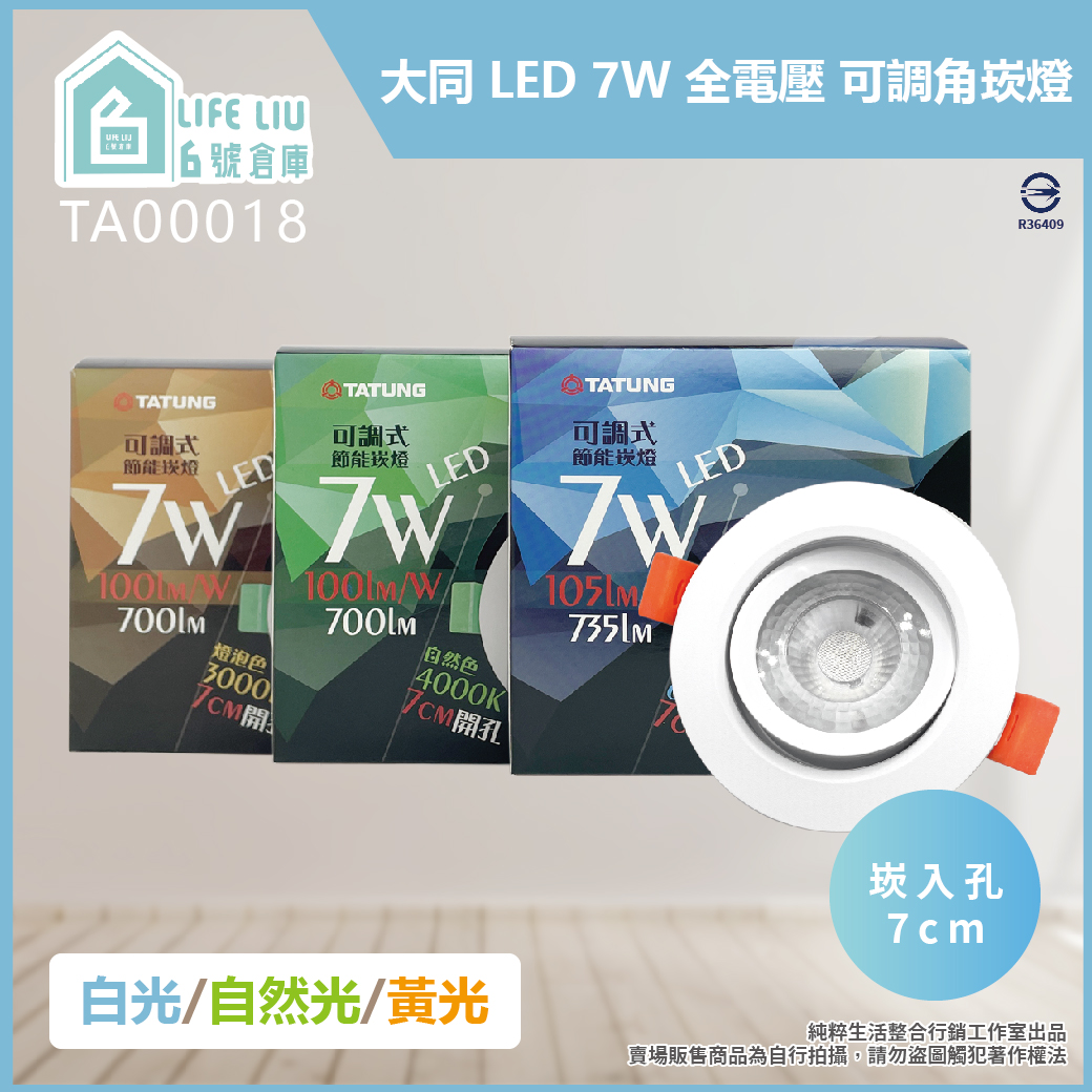 大同 TATUNG LED 7W 全電壓 可調式 7cm 崁燈