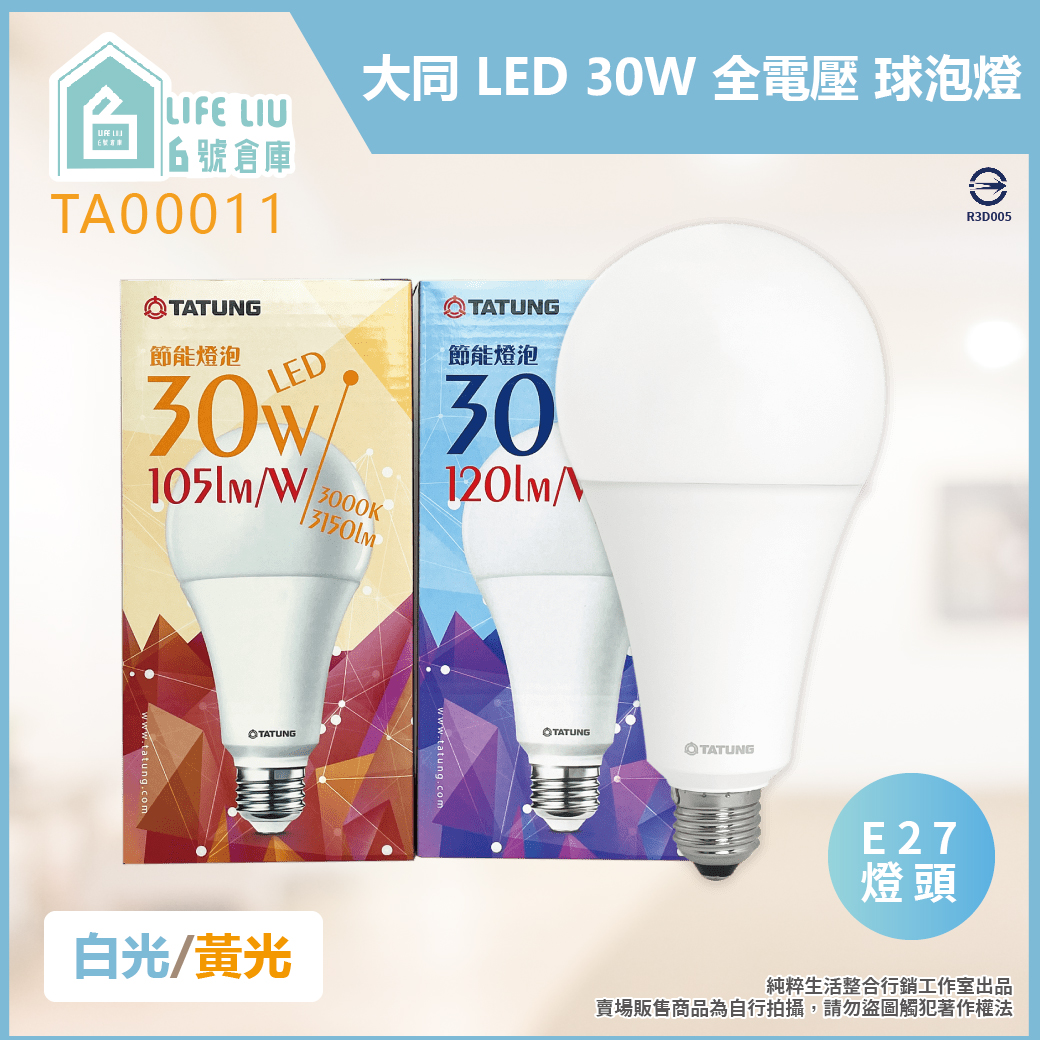 大同 TATUNG LED燈泡 30W 6500K 白光 E27 全電壓 LED 球泡燈
