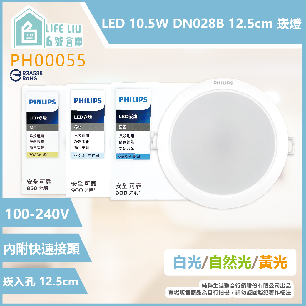 飛利浦 PHILIPS LED DN028B 10.5W 全電壓 12.5cm 崁燈