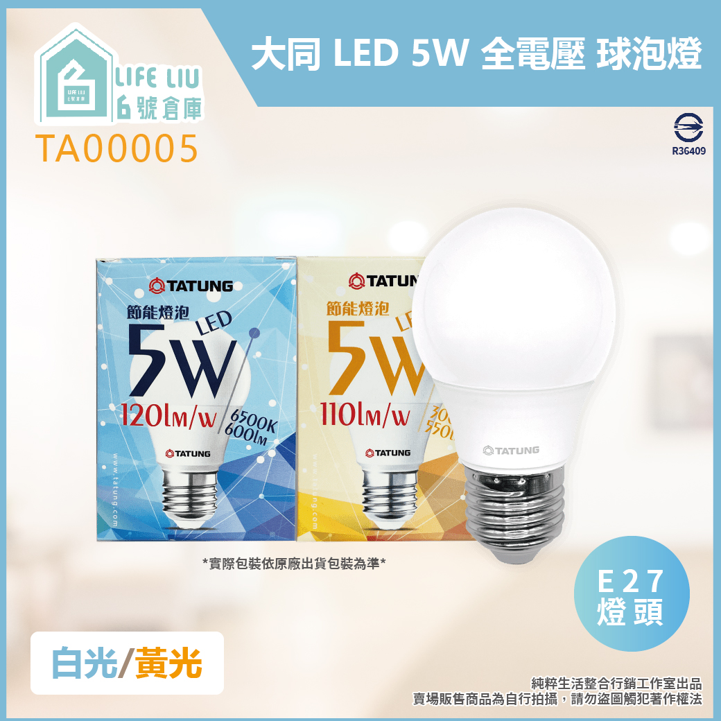 大同 TATUNG LED燈泡 5W E27 全電壓 LED 球泡燈