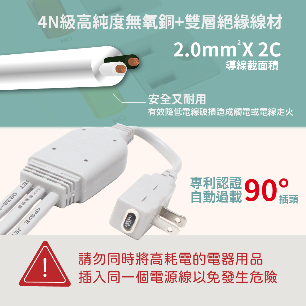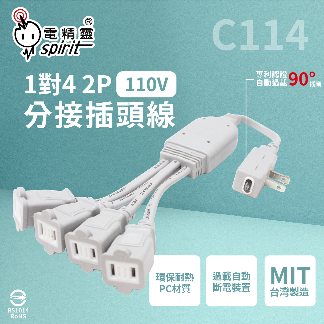 【life liu6號倉庫】電精靈spirit C114 自動過載 110V 1對4 2P 分接線 分接插頭線 延長線