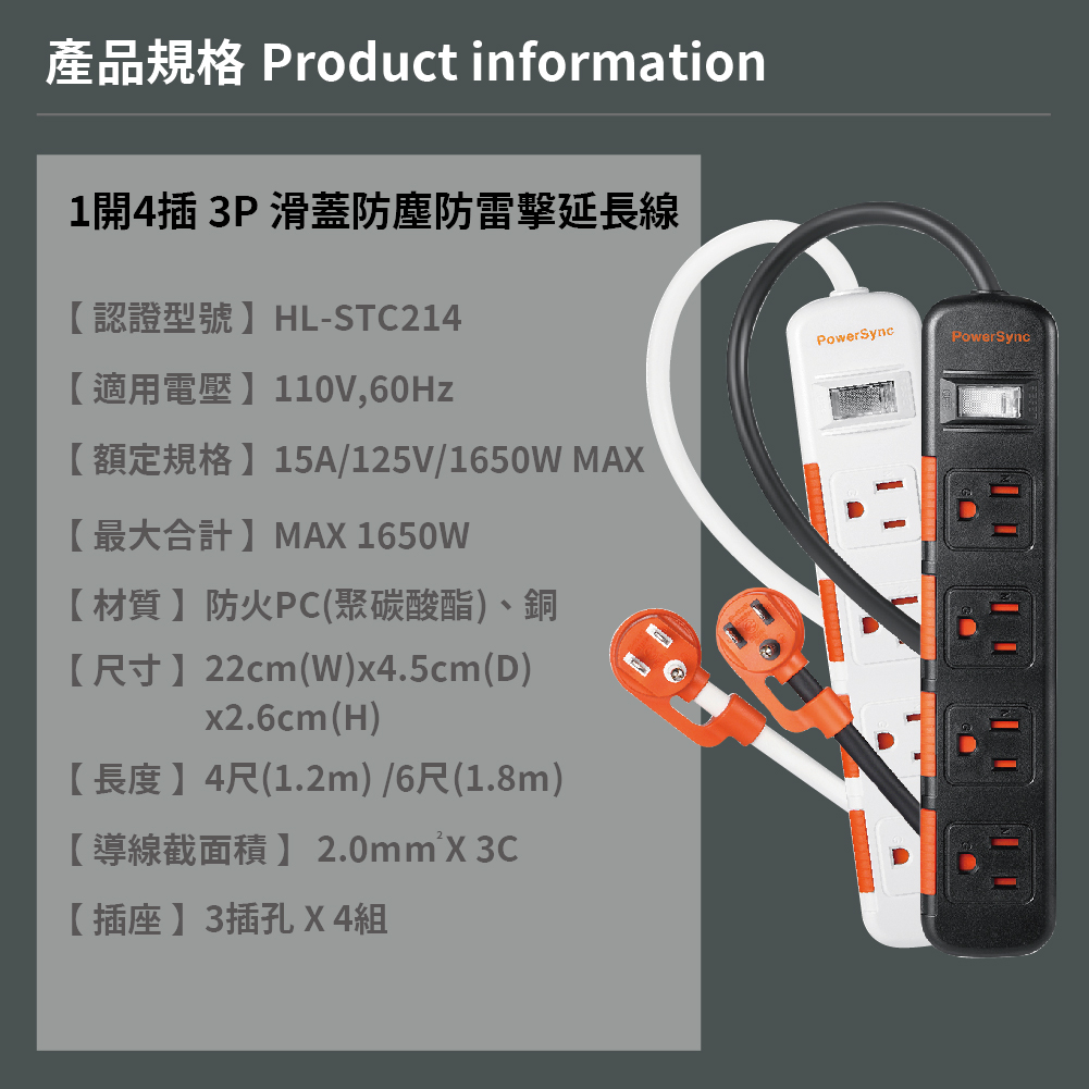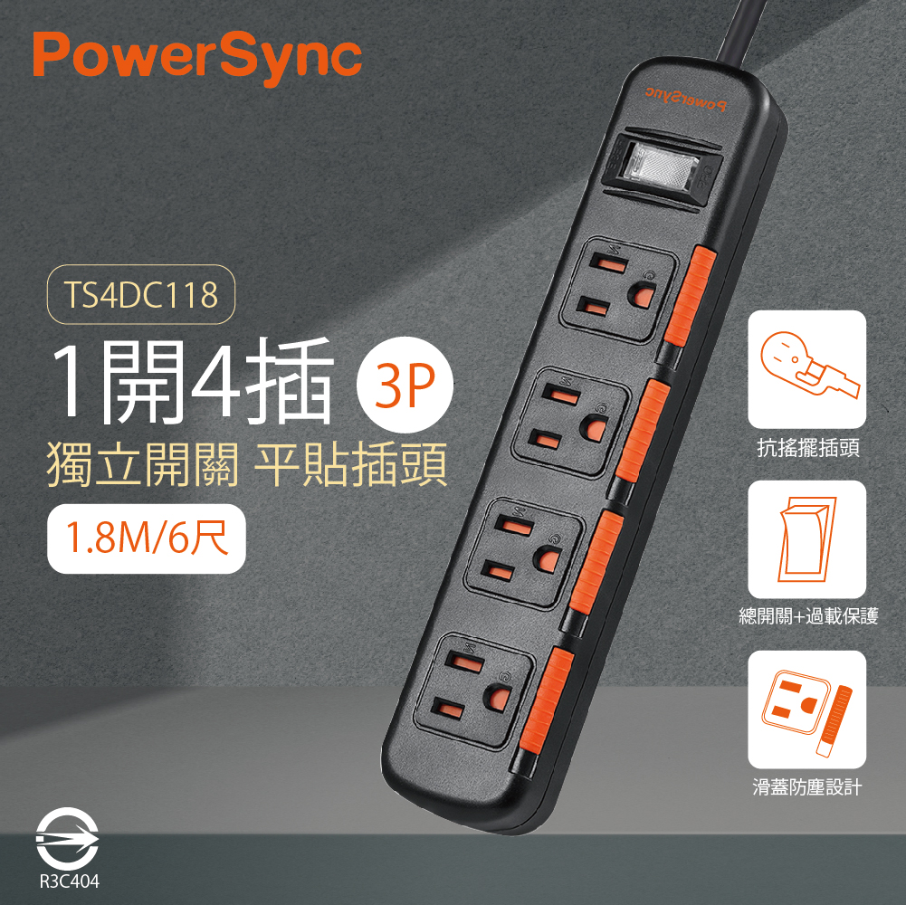 【life liu6號倉庫】群加 TS4DC118 TS4DB118 1開4插3孔 1.8m 6尺 滑蓋防塵防雷擊延長線