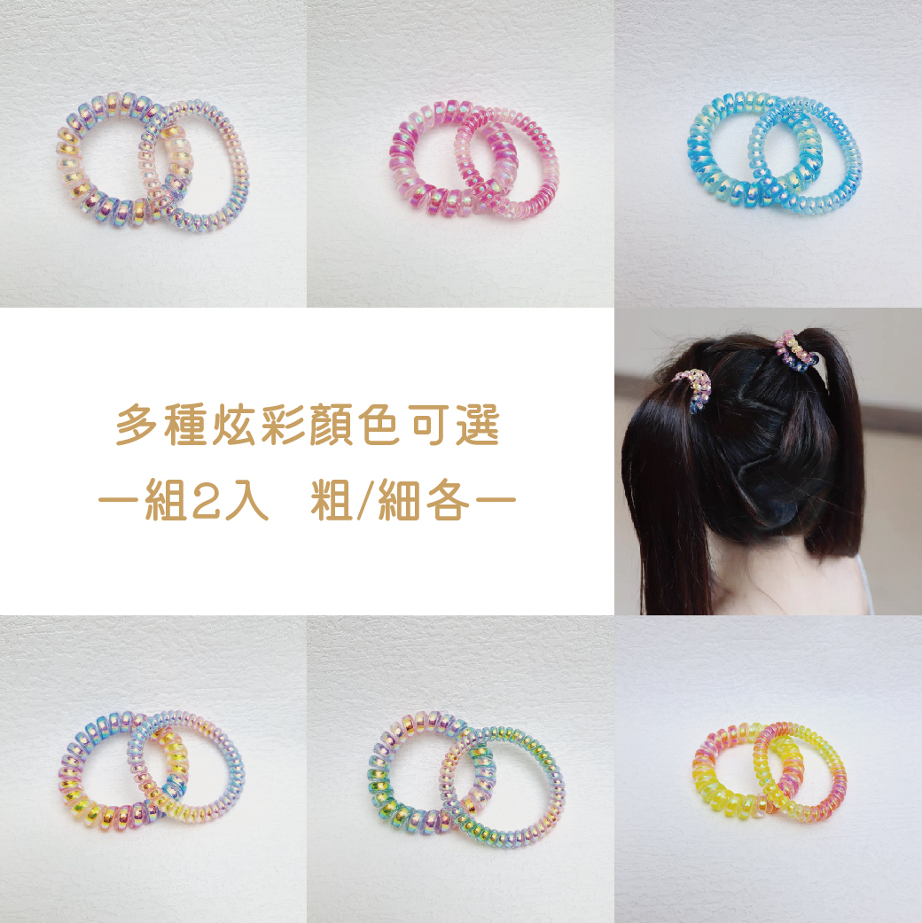 💥快樂童話💥 2入組 幻彩雷射人魚姬漸層電話圈 彩色 粗 亮面 圈圈 髮飾 髮繩 髮束 髮圈 髮束 可愛
